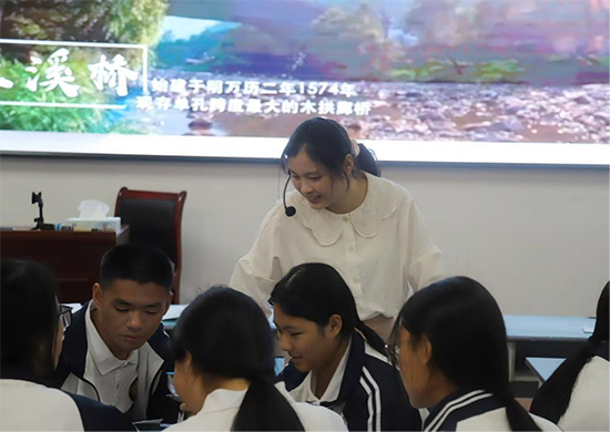 遂昌職業(yè)中專謝云蕾老師的《跨媒介表達(dá)與交流——慶元廊橋非遺推介》從四個(gè)環(huán)節(jié)入手,讓學(xué)生了解不同媒介特點(diǎn)與語(yǔ)言特征。