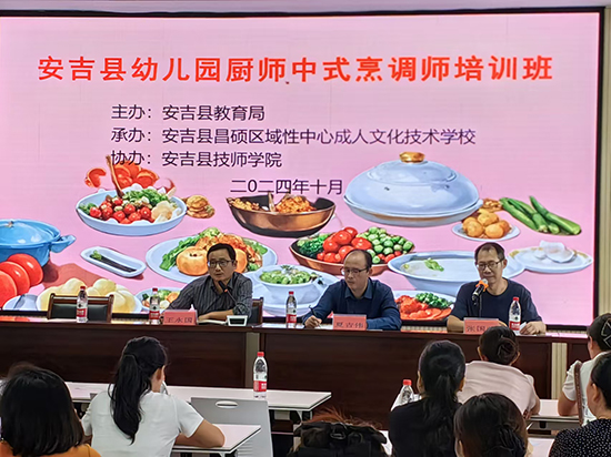 10月18日,“2024年安吉縣幼兒園廚師‘中式烹調(diào)師’培訓(xùn)班”開班儀式在安吉縣昌碩區(qū)域性中心成人文化技術(shù)學(xué)校(安吉縣昌碩成校)開班。此次培訓(xùn)班由安吉縣教育局舉辦、安吉縣昌碩成校承辦,并得到了安吉縣技師學(xué)院的大力支持。