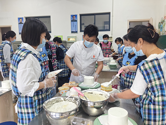 活動現場,居民們身著統一的圍兜,化身烘焙大師,在烘焙老師孔少兵的悉心指導下,一步步學習烘焙技巧。從制作蛋糕胚到打發奶油,再到裝飾花式,每一位參與者都全神貫注,樂在其中。