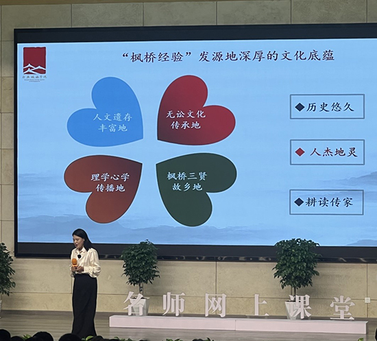 據悉,馮國利,浙江大學哲學博士。中共諸暨市委黨校(楓橋學院)高級講師,紹興市王陽明研究會理事,紹興市“人文社科”講師團講師,諸暨市委講師團講師,榮獲浙江省社科院系統優秀課獎,紹興市黨校系統精品課獎。主持多項省市黨校系統課題,在《中國哲學史》等期刊發表論文多篇,出版專著《賈誼政治哲學思想研究》。培根鑄魂,立德樹人。為了落實總綱精神,開展紹興市“名師網上課堂”第四期教學活動,由紹興市教育局主辦,諸暨市教育體育局承辦,諸暨市楓橋鎮初級中學協辦。(孫文明)