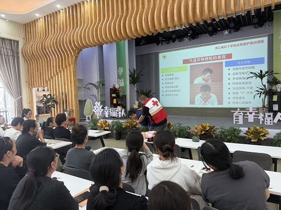 10月24中下午,紹興市柯橋區柯橋成人文化技術學校(柯橋街道紅十字應急救護培訓基地)在柯橋區中心幼兒園開展紅十字應急救護普及培訓,參加本次培訓的是幼兒園的老師和保育員,共計100余人參加培訓。