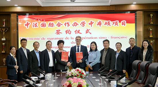 在熱烈的掌聲中,雙方正式簽署了中法國際合作辦學中本碩項目的合作協議。該協議的簽署標志著兩校將在本碩連讀、學生交流和學習訪問等方面展開深入合作,共同培養具有國際競爭力的復合型專業人才,推動中法教育合作與文化交流。