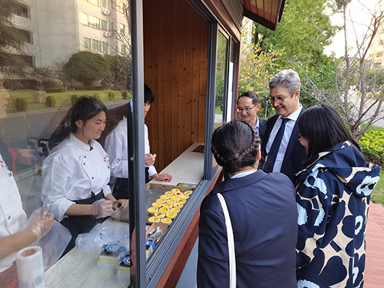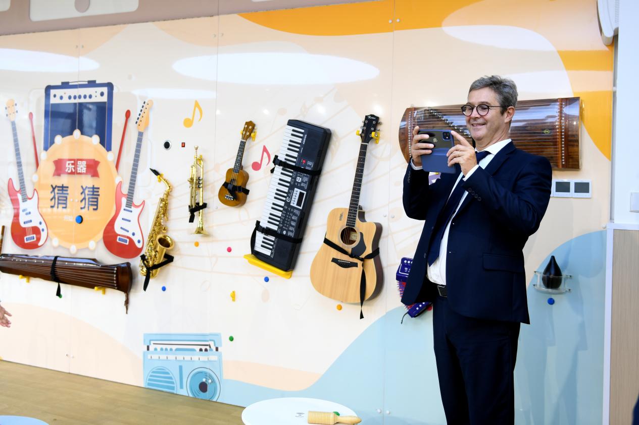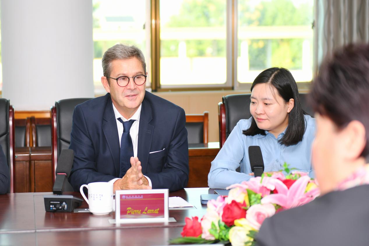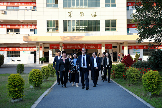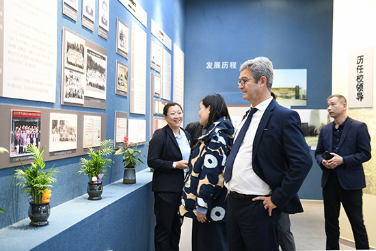 簽約儀式后,在俞書記的陪同下,Pierre Larrat教授一行參觀了學校的現代化教學設施和充滿文化氛圍的校園環境。從附屬幼兒園到校史館,從盧文臺文化廣場到白沙文化創業園,每一處都體現了學校對優質教育的不懈追求,使法方代表深刻感受到中國教育現代化進程中的蓬勃生機。