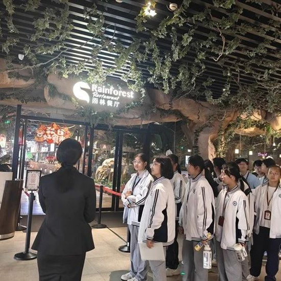 在酒店各部門主管的帶領下,學生們先后參觀了酒店餐飲部、客房部、酒店游樂區域等場所,并深入各崗位,親身體驗酒店工作的實際操作和流程。從熱情的前臺接待到整潔的客房服務,再到忙碌的餐飲部門,每一個崗位都讓學生感受到了酒店行業的獨特魅力。