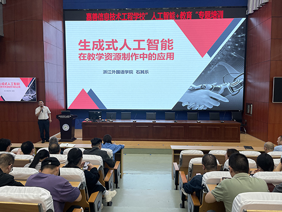 10月14日,浙江外國語學(xué)院石其樂教授為嘉善信息技術(shù)工程學(xué)校全體教師帶來了題為《生成式人工智能在教育教學(xué)中的應(yīng)用》的講座。本次講座旨在普及生成式人工智能的基礎(chǔ)知識(shí)和前沿應(yīng)用,讓老師們在數(shù)智化時(shí)代的教學(xué)潮流中穩(wěn)舵前行。
