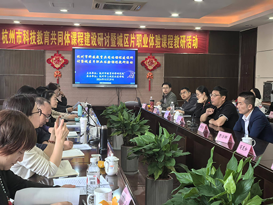 攜一縷丹桂芬芳,赴一場研修盛宴。10月29日,杭州市科技教育共同體課程建設(shè)研討暨城區(qū)片職業(yè)體驗課程教研活動在上城區(qū)社區(qū)學(xué)院景芳院區(qū)舉行。杭州市教育局職成教處副處長張丹、杭州市教育科學(xué)研究院副院長洪彬彬、浙江工業(yè)大學(xué)教育學(xué)院劉輝教授、杭州教育科學(xué)研究院林曉老師、上城區(qū)社區(qū)學(xué)院院長項潔月等領(lǐng)導(dǎo)以及杭州市成人教育教科研理事會成員、片組片長、各區(qū)縣市成教科研負(fù)責(zé)人、城區(qū)片科研骨干、杭州市科技教育共同體工作聯(lián)絡(luò)員、杭州市各區(qū)縣社區(qū)教育課程建設(shè)負(fù)責(zé)人參加了此次教研活動。上城區(qū)作為杭州市首個職業(yè)體驗試點區(qū),浙江省教育廳浙教集團(tuán)首個職業(yè)體驗實驗基地承辦此次教研活動,推動中小學(xué)“職業(yè)體驗”教育高質(zhì)量發(fā)展。