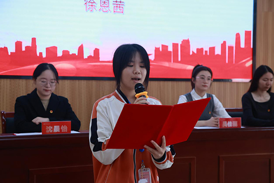 2304班徐恩茜同學(xué)作為入團(tuán)積極分子代表進(jìn)行發(fā)言。她表示能夠參加本次團(tuán)課既是對(duì)自己過去努力的肯定,更是對(duì)未來成長(zhǎng)的一種責(zé)任。她將用實(shí)際行動(dòng)向團(tuán)組織證明自己的成長(zhǎng)和進(jìn)步。相信各位入團(tuán)積極分子定能以此次團(tuán)課為契機(jī),不斷提高自己的政治思想覺悟,積極向團(tuán)組織靠攏,努力成長(zhǎng)為有理想、有道德、有文化、有紀(jì)律的中國共產(chǎn)主義青年團(tuán)團(tuán)員。