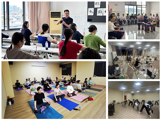 在課程設置上,夜校課程包括:瑜伽、民族舞、爵士舞、美術、書法、非洲鼓等,活動涵蓋了多個領域和層次,包括職業發展、身心健康、休閑生活、文化素養等。課程內容豐富多樣,滿足不同學員的學習興趣和需求;在教學模式上,夜校活動采用線上線下相結合的教學模式,方便學員隨時隨地學習。在師資力量上,夜校活動的授課教師均為專業教師,他們具有豐富的教學和實踐經驗,能夠為學員提供高質量的教學服務。