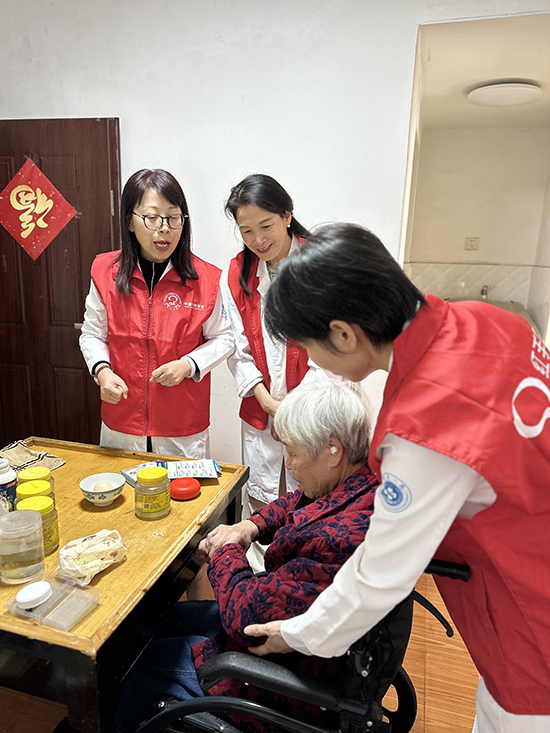 值得一提的是,活動還深入到了社區(qū)居民家中。醫(yī)護團隊特意來到大通橋社區(qū)80歲的王枝蘭老人家中,為王奶奶進行了全面且細致的醫(yī)學(xué)指導(dǎo)。從日常用藥到生活起居的注意事項,醫(yī)護人員都一一叮囑,讓王奶奶及其家人感受到了滿滿的關(guān)懷。