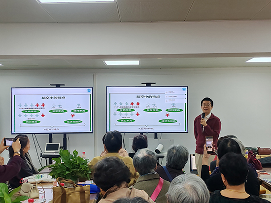 隨后開展了兩堂健康宣教講座。神經(jīng)內(nèi)科資深護士長胡葉文帶來了《如果吃得更健康》的講座,她用通俗易懂的語言,結(jié)合實際案例,詳細講解了飲食與健康的緊密關(guān)系,并通過提問搶答闖關(guān)的趣味形式讓居民們深刻認識到預(yù)防卒中方面的飲食要點;神經(jīng)內(nèi)科韓思達醫(yī)生的《別讓您的大腦遭遇“堵車”危機》講座則以生動的比喻,形象的視頻,深入淺出地介紹了卒中的成因、危害以及預(yù)防措施,提醒大家養(yǎng)成健康的生活方式,定期進行腦卒中危險因素篩查,做到早預(yù)防、早發(fā)現(xiàn)、早診斷、早治療,有效地防治腦卒中。