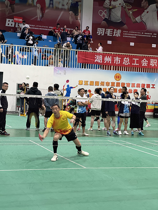 本次比賽共23支隊伍,300余人參加,比賽為五場制混合團體賽(男單、女單、男雙、女雙、混雙)。采用五場三勝制,進行分組循環賽和淘汰賽。學校工會自接到比賽通知后在全校選拔優秀隊員,針對比賽的賽制和規程開展針對性訓練,提升技術水平,增強身體素質。經過一天的激烈角逐,在第一階段小組賽中,學校教工隊以小組全勝排名第一的戰績進入八強。在第二階段四進二的淘汰賽中遇到了上一屆的冠軍湖州師范學院和亞軍湖州中學,遺憾止步于四強。賽場上學校運動員奮力拼搏的表現充分展示了學校教工積極向上的精神風貌。