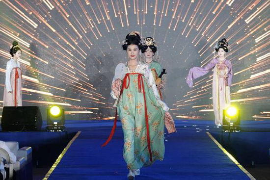 在時尚魅力表演秀中,浙江省湖州藝術與設計學校《華彩織夢》作品秀以唐宋時期經典古風造型為基礎,結合現代審美標準重構人物整體造型,華美的妝造與精彩的呈現,得到了現場觀眾的陣陣掌聲。