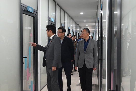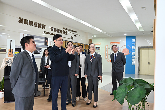考察組一行先后參觀了學校“荷韻”文化作品展示廳、流動書吧、語言文字工作室、藝術中心、小荷包創新創業中心、各實訓場室、新商科走廊、志愿者廣場、招生大廳等,親身感受學校深厚的文化底蘊、先進的實訓設備以及濃厚的創新氛圍。