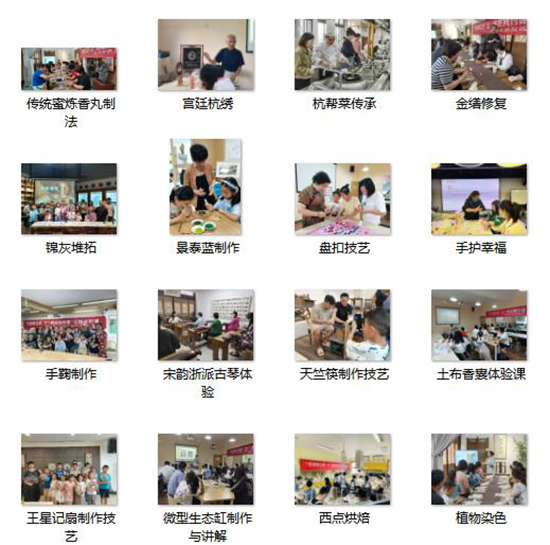 應市民需求,“行走的工匠”終身學習品牌項目又繼續開發了文化體驗、職業技能、考證等主題化、個性化培訓課程,如為社區老年文化社團量身打造了“化妝與清潔”系列培訓,指導老年人畫好演出妝,學會日常皮膚護理,進一步增強了老年人的文化自信;為熱愛漢服文化的年輕人拍攝了從眉妝到發飾等十節定制的“古韻美妝”網絡視頻課程,從文化導入、故事情境、妝容知識到實際操作、細節傳授,緊跟時尚潮流,切合了年輕人的審美,觀看量達萬余人次;為城郊結合部的外來務工人員、新杭州人開辦了“家常的杭幫菜”現場授課,同步直播并在抖音上宣傳推廣,實現精準教學。另外,結合殘疾人員、矯正人員需求,開設了相應的工匠技藝課和職業技能課,如天竺快制作工藝、布藝文創、美容美發等,促進就業創業;“行走的工匠”技藝課堂還走近特殊孩子,助力杭州市兒童福利院“走遍杭州”游學活動,為小天使們鏈接了一場融學習、參觀、體驗于一體的研學游活動,從王星記扇到浙派古琴,在工匠的耐心指導和志愿者一對一的幫助下,孩子們DIY了一把屬于自己的折扇,嘗試了古琴基礎指法練習,在沉浸式學習中地感受非遺文化的魅力,讓非遺之美在孩子心中扎根發芽。