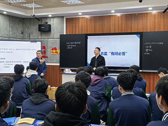 首先是金志宇、黃靈平兩位老師與企業(yè)銷售總監(jiān)帶來的“汽修+營銷”學科嵌入式課堂,通過講解分析、“有問必答”等互動環(huán)節(jié),讓學生了解新能源汽車“新質”銷售及其服務,啟發(fā)學生的創(chuàng)新思維,培養(yǎng)學生對未來的職業(yè)規(guī)劃。
