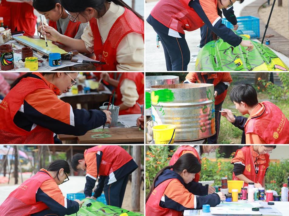 從油桶到木板,從設計到上色,小小的畫筆讓藝術與自然合而為一,交相輝映。同學們繪制的木板指示牌,給棲sail沙灘注入了童趣活力;原本平平無奇的皮劃艇,經過同學們的裝飾改造,也變得煥然一新;還有原本不起眼的小擺件,通過彩繪也變成了趣味盎然的藝術品。