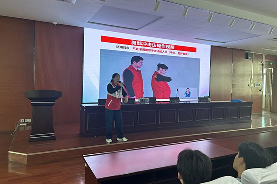 隨后,宋老師詳細講解了氣道異物梗阻的識別方法和應急處理步驟。她通過圖文并茂的講解和生動的模擬演示,使學生們準確掌握了輕度梗阻和重度梗阻的區別,以及針對不同梗阻程度的處理方法。對于輕度梗阻,建議保持冷靜,密切觀察患者情況,必要時撥打急救電話;對于重度梗阻,則應立即采取急救措施,如海姆立克急救法等,盡快解除梗阻。