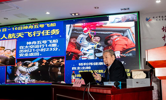 沈力平院士的講座從載人航天工程的立項(xiàng)及“三步走”發(fā)展戰(zhàn)略、中國載人航天工程技術(shù)體系、飛船與空間實(shí)驗(yàn)室歷次飛行任務(wù)、空間站建設(shè)及在軌科學(xué)技術(shù)研究與應(yīng)用、載人月球探測(cè)工程以及對(duì)未來的展望六個(gè)方面展開。
