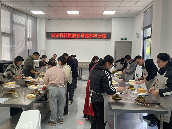 為緩解轄區社區工作人員的工作壓力,提高工作效率。11月26日下午,安吉縣社區教育學院孝豐分院在學校烘焙教室開展“情暖社工 樂享烘焙”裱花蛋糕免費培訓活動。三眼井、南臺、北街社區的20余位工作人員參加活動。