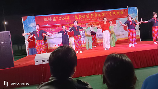 11月19日晚,諸暨市楓橋鎮(zhèn)新?lián)窈鍙V場上臨時(shí)搭起了一個(gè)舞臺,“楓橋鎮(zhèn)2024年‘聚美諸暨 共享共富’文藝演出”在此舉行,村民絡(luò)繹不絕地聚集到舞臺前就座。