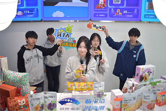 走進“臨平造品牌館”的直播區域,同學們迅速進入狀態,化身為專業的帶貨主播。在直播間里,他們面對鏡頭,自信滿滿地展示著各類特色產品。在直播過程中,同學們展現出良好的應變能力和團隊協作精神。面對觀眾提出的各種問題,能夠迅速、準確地給予解答,并且根據觀眾的反饋及時調整直播節奏和策略。直播間外,指導老師們密切關注著學生們的表現,不時給予鼓勵和指導。當遇到較為復雜的問題時,企業導師會及時介入,幫助同學們化解難題,確保直播活動的順利進行。
