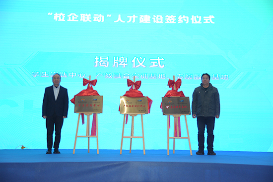 簽約儀式后,學生實踐中心、產教融合實訓基地、志愿服務基地揭牌儀式依次舉行,學校黨委書記邵曉舟與融媒體中心黨委委員黃月春共同揭牌。這三個基地的建立,將進一步深化校企合作內涵,為學生搭建起從校園到職場的無縫對接平臺。