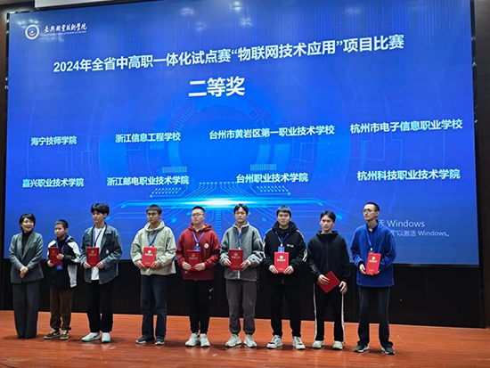 11月21日至22日,由浙江省教育廳牽頭主辦的2024年浙江省中高職一體化試點賽“物聯網技術應用”項目(首屆)在嘉興職業技術學院舉行。浙江信息工程學校信息部物聯網23班莫鵬飛和浙江郵電職業技術學院陳秉康聯合組隊(指導教師 中職:胡煜 高職:陳浩杰),取得全省第四名的佳績,榮獲團體二等獎。