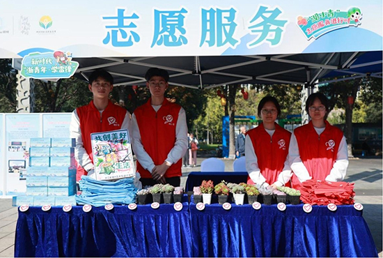 4名學生干部承擔團市委“湖小青”崗位任務,向市民倡導垃圾分類、綠色環(huán)保理念。