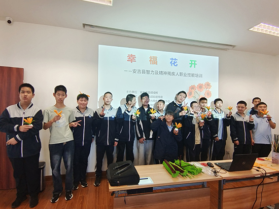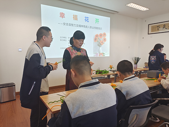 為積極響應(yīng)國務(wù)院《促進(jìn)殘疾人就業(yè)三年行動方案(2022—2024年)》的號召,安吉縣致力于挖掘智力及精神殘疾同胞的職業(yè)潛能,提升他們的職業(yè)能力,以促進(jìn)殘疾人就業(yè)。10月9日,安吉社區(qū)教育學(xué)院昌碩分院(簡稱昌碩成校)攜手昌碩街道,共同舉辦了“幸福花開”——安吉縣智力及精神殘疾人職業(yè)技能培訓(xùn)活動。