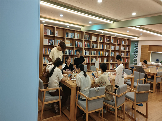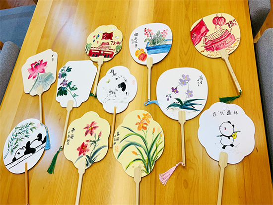 學員們用手中的畫筆,在扇子上創作著,經過兩個小時的努力之后,每個人都完成了一把手繪團扇。