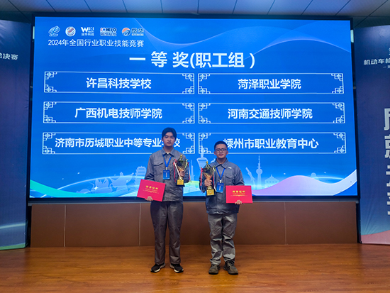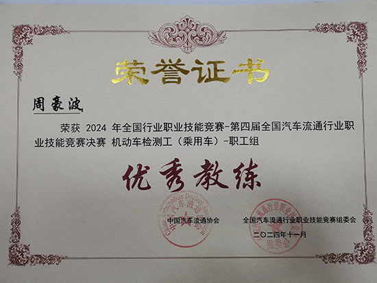 在機動車檢測工(乘用車)總決賽中,鐘亮老師榮獲機動車檢測工(乘用車)職工組一等獎,由鐘亮老師指導的22汽修大專宓慷維同學榮獲機動車檢測工(乘用車)學生組二等獎,周豪波老師被評為機動車檢測工(乘用車)職工組優(yōu)秀教練。