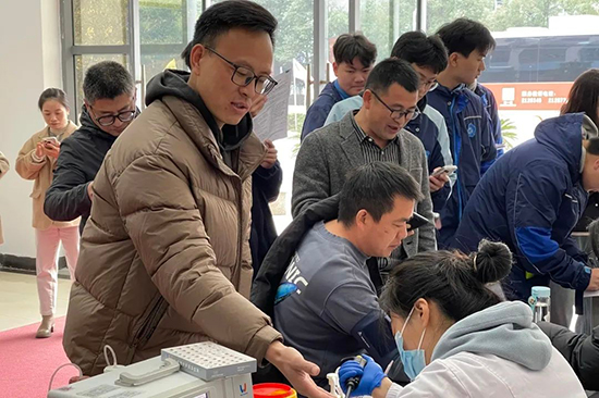 獻血站點前,師生們認真地填寫著各種表格,耐心地接受體檢和血液化驗。在醫(yī)護人員的悉心指導(dǎo)下,師生們一個一個順利完成了抽血過程。