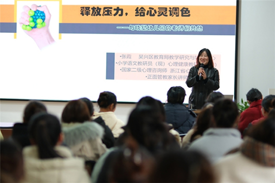 通過(guò)此次培訓(xùn)學(xué)習(xí),曉墅幼兒園的老師們進(jìn)一步增加了一些心理健康方面的專業(yè)知識(shí),學(xué)到了一些很實(shí)用的自我解壓和自我調(diào)節(jié)情緒的方法,大家從心理到思想上得到了升華,為今后高質(zhì)量地工作、學(xué)習(xí)、生活奠定了良好的基礎(chǔ)。該園園長(zhǎng)、書(shū)記張勝男高興地說(shuō):“非常不錯(cuò),張老師講得很接地氣,通俗易懂,而且真的可以幫到我們,成為更積極、更美好的自己!”(周亞)
