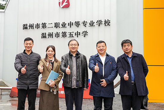 12月6日,浙江省教育廳職業教育與成人教育教研室主任崔陵帶領一行專家蒞臨溫州市第二職業中等專業學校,開展了一次深入的調研指導活動。此次活動旨在深入了解溫二職專在職業教育領域的實踐探索進程及成效,并為未來的發展提供專業建議。