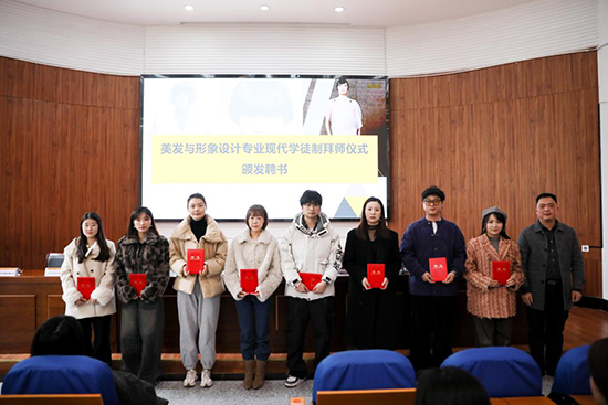 12月9日上午,浙江省湖州藝術與設計學校美發與形象設計專業現代學徒制拜師儀式在報告廳舉行。來自湖州市美發、美容行業的8家企業代表,10多位企業結對師父代表以及學校領導、相關教師和2319班學生參加,實習實訓處處長費曉旦主持儀式。