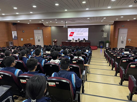 12月13日,在校報告廳與高一各班教室里,臨平商貿職業高級中學2024學年第一學期高一年級學生期中總結表彰會議以線上線下相結合的創新形式舉行。全體高一同學和班主任老師們齊聚,以“堅定信心 厚積薄發”為主題,深入總結半學期的學習與生活點滴,展望未來的成長之路。會議由2024級年級主任王海珍老師主持。