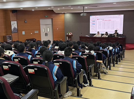 年級組教學管理趙雨成老師緊接著就半學期教學總結,對期中成績深度剖析。入學以來,高一年級組多管齊下,全力培育學生良好學習習慣。早自習期間, “激情早讀” 活動成效顯著,全體高一班級早讀水平大幅提升。