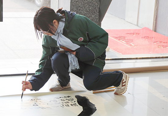 褚曉瓊表示,作為黨建共同體成員單位,嘉興市文化館與學校在公益培訓、職業文化體驗、非遺技藝等方面有著緊密的合作。作為中國傳統文化的瑰寶,書法的藝術魅力在于每一筆每一劃的精準與流暢。大字書法,在整個書法體系中占有重要的位置,尤其在氣勢與情感表達上有著獨特的優勢。