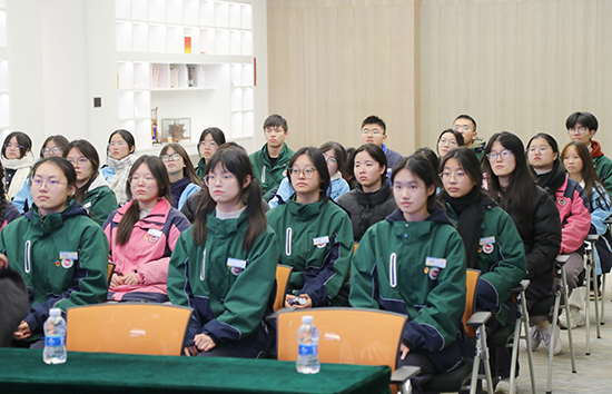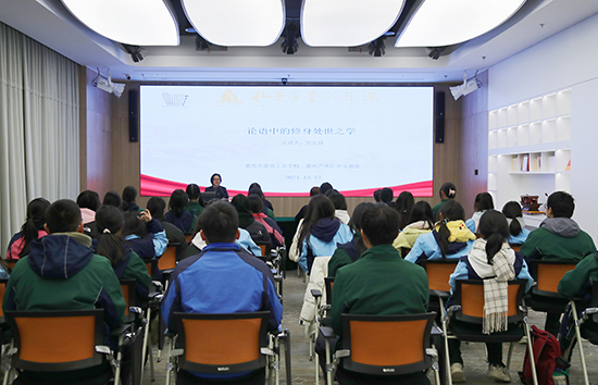 參觀結束后,竹弘祿為師生帶來主題為《論語中的修身處世》專題講座。竹弘祿引經據典,深入淺出地闡述了《論語》中所蘊含的修身之道。同時,她圍繞“學什么、學習應抱什么態度、如何學”等幾方面內容,重點講解了“學”好修身之道的重要性。