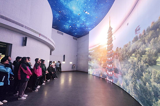 移步換景間,一行人來到大運河數字詩路e站南湖體驗中心。該館內以大運河文化為核心,借助虛擬現實、互動投影等前沿數字技術,將千年運河的歷史變遷、地理風貌、人文故事生動展現。師生一行有序參觀、積極互動,深度領略了千年運河文化的底蘊和魅力。