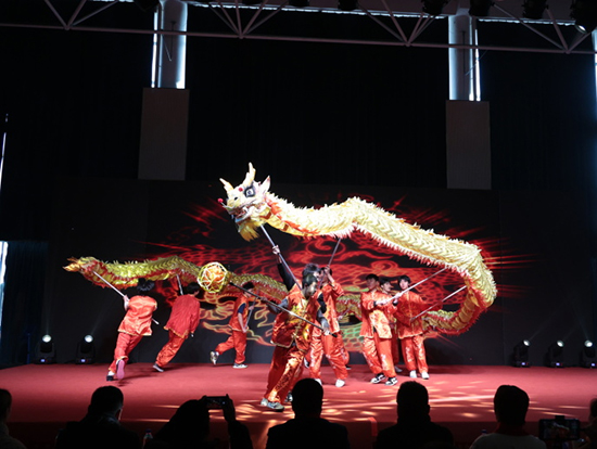 在歡慶的鑼鼓聲中,學校舞龍社用精彩的表演拉開了序幕,隊員們剛勁有力、步伐靈活,龍獅盤旋飛躍、翻騰起舞,開場表演帶動全場氣氛,不僅展現了中華傳統民俗文化,同時表達了對美好生活的祝福。