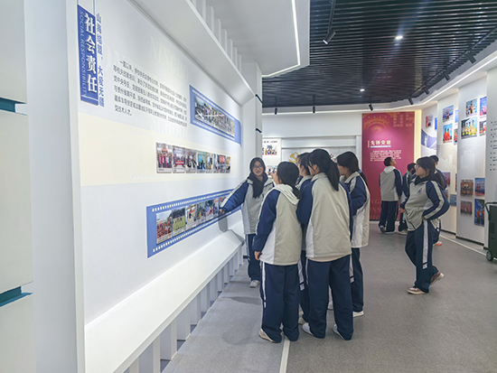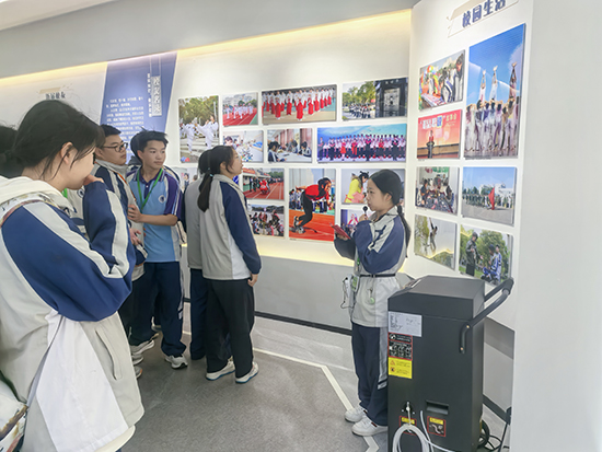 此次活動采取分批參觀形式進行,每周組織一個學部的學生參觀。校史館內,一張張珍貴的照片成為歷史的見證。由24級導游班7名學生和23市政班1名學生共同組成的講解團,輪流上陣,他們用生動語言將學生的發(fā)展歷程娓娓道來,從建校初心到辦學成果,從專業(yè)發(fā)展到杰出校友事跡,無一不涵蓋其中。高一學生們在照片前久久駐足,從黑白影像中深切感受往昔歲月的痕跡,從電子相冊的光影流轉里領略學校日新月異的變遷。這一刻,他們仿佛與先輩們進行了一場跨越時空的對話,心中充滿了對學校歷史的敬畏與對未來的憧憬。