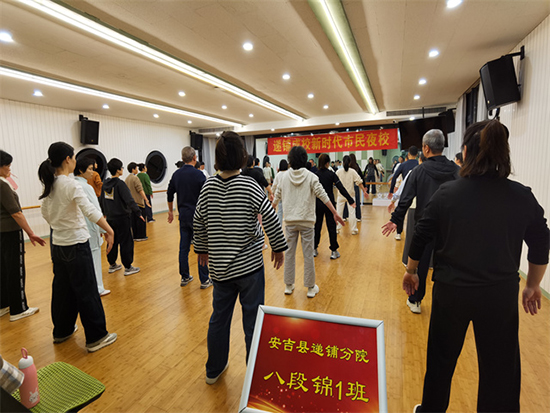 11月6日晚,安吉縣社區教育學院遞鋪分院組織開展八段錦知識普及培訓,來自轄區內各個村、社區對八段錦感興趣的30多位學員參加了本次培訓,邀請了教練王連生老師授課。