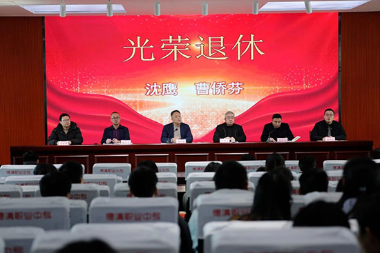 1月20日,德清職業中專為沈鷹和曹僑芬兩位教職工舉辦了隆重的榮休儀式,全體教職工共同見證了兩位為學校默默奉獻多年老同事的光榮退休。儀式由縣職業教育黨委委員、德清縣職業中專副校長高陽會主持。