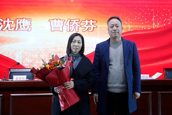 縣教育局黨委委員、縣職業教育黨委副書記、湖州市技師學院院長、德清縣職業中專校長董國偉為退休老師送上鮮花,以此表達對他們多年來辛勤工作和無私奉獻的感激之情。全場教職工以熱烈的掌聲,共同祝愿他們退休生活幸福美滿。