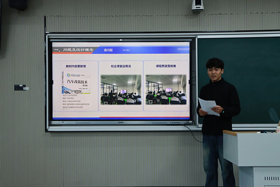 在教學(xué)能力大賽現(xiàn)場,參賽團(tuán)隊(duì)借助精心制作的 PPT,深入且全面地闡述教學(xué)實(shí)施報(bào)告思路。他們從別具匠心的教學(xué)策略切入,生動展現(xiàn)如何依據(jù)教學(xué)目標(biāo)與學(xué)生特點(diǎn),制定獨(dú)特有效的教學(xué)方案;隨后有條不紊地?cái)⑹鼋虒W(xué)過程,呈現(xiàn)課堂互動與知識傳授的精彩瞬間;最后以詳實(shí)的數(shù)據(jù)和案例,展示顯著的教學(xué)效果,全方位彰顯實(shí)際教學(xué)能力,為評委們呈現(xiàn)出一幕幕鮮活的教學(xué)實(shí)踐圖景。