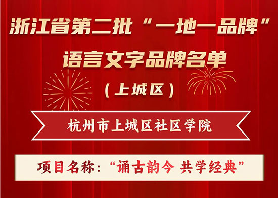 日前,省教育廳辦公室公布了浙江省第二批“一地一品牌、一校一特色”語言文字工作典型案例征集遴選結果,確定省語言文字品牌16個、語言文字典型案例學校50所。杭州市上城區社區學院申報的“誦古韻今 共學經典”榜上有名。