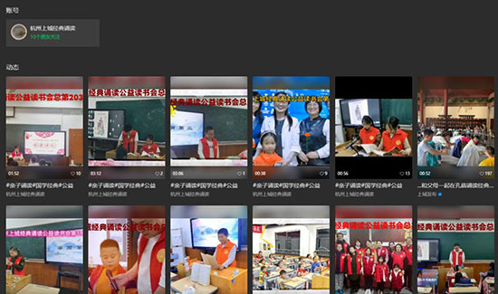 項目還特別開設了杭州上城經典誦讀公眾號和視頻號,通過定期推送發布課程介紹、推薦經典書目、展示親子誦讀片段等,激發家庭的參與熱情和積極性,為親子誦讀搭建了溝通展示的便捷平臺。