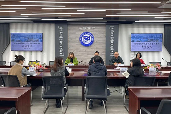 本學期,浙江信息工程學校有幸迎來了湖州師范學院應用心理學的4位師范生來校實習。為了深入兩校合作與交流,進一步了解實習生的學習與工作情況,11月22日上午,湖州師范學院教師教育學院黨委書記沈江龍、應用心理系黨支部副書記馮洋、應用心理系教研室主任王松琴、應用心理系教師代表徐冬英一行4人來到浙江信息工程學校,參加心理專業師范生教育實習調研座談會。會議由學校學生處楊育萍處長主持,校黨委副書記、校長閔惠敏,黨委委員、副校長陸婷,專職心理教師管惠瑜、應慶和4位實習生共同出席。