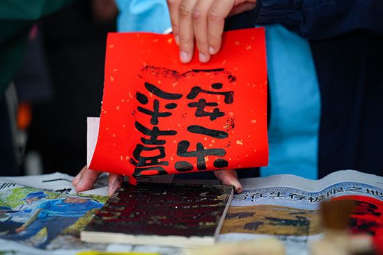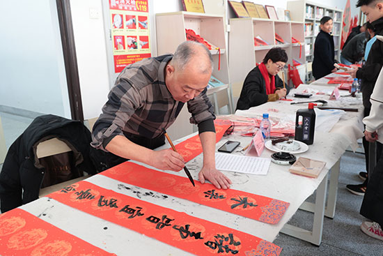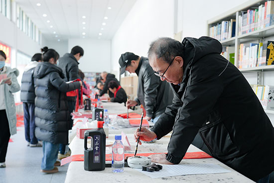 活動(dòng)現(xiàn)場(chǎng)書香四溢,“年味”十足,一條條長(zhǎng)隊(duì)有序排開(kāi)。送“福”字的書法大家以及書法社團(tuán)老師們以墨筆作媒,以墨字傳情,提筆凝神,在紅紙上揮斥方遒,筆走龍蛇,一橫一豎、一撇一捺,從傳統(tǒng)的楷書到飄逸的行書,一句句工整的妙聯(lián)、一個(gè)個(gè)飽含祝福的“福”字,不僅展現(xiàn)了書法藝術(shù)的魅力,更寄托著大家對(duì)新的一年幸福生活的殷切期盼。